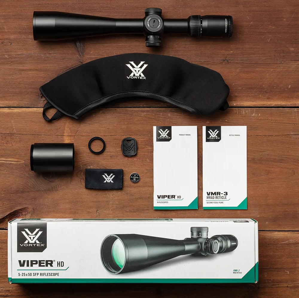 Take your shooting accuracy to the next level with the Vortex Viper HD 5-25x50 SFP Riflescope, featuring the VMR-3 MRAD reticle. Designed for serious hunters and marksmen, this riflescope combines high-definition optics and precision engineering to ensure you have the clarity and detailed view needed for challenging long-range shots. Whether targeting game in the early dawn or practicing on the range, the Viper HD delivers unparalleled performance.